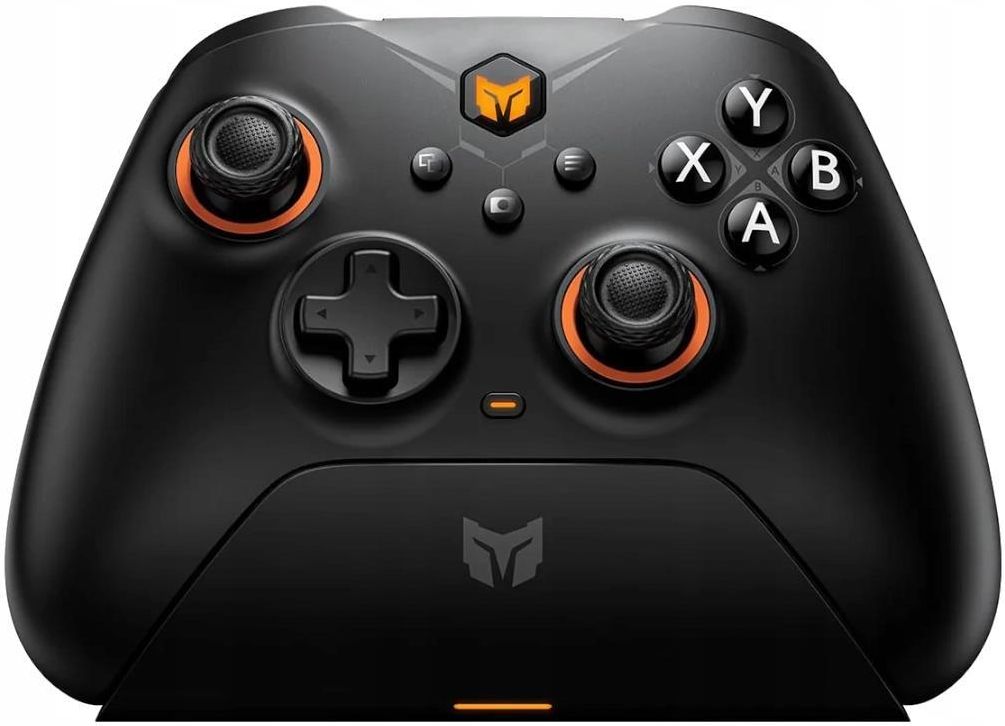 BIGBIG WON GALE Hall Combo Czarny GALE-HALL-COMBO-BLACK GALE Hall to kontroler, który zawiera w sobie odrobinę magii. Zarówno gałki jak i triggery swoje działanie opierają na efekcie Halla, czyli zjawisku fizycznym wykorzystującym magnetyzm do precyzyjnego i trwałego sterowania postaciami oraz pojazdami w grach. Nowe silniki wibracji dodają całkowicie nowych doznań, a pojemna bateria pozwala zapomnieć o przewodach na długie godziny rozgrywki w ulubione tytuły. Efekt Halla Zarówno gałki, jak i spusty są wyposażone w czujniki wykorzystujące do działania efekt Halla – czyli pole magnetyczne. Zalet tego rozwiązania jest bardzo wiele, ale najważniejsze z nich to niesamowita precyzja oraz zwiększona trwałość urządzenia. Magnetyczne triggery pozwalają na wykorzystanie dwóch trybów pracy – dostosowanego pod gry typu FPS oraz dla gier sportowych, np. wyścigów, gdzie rejestrujące aż 256 poziomów nacisku spusty mogą symulować płynne naciskanie pedałów gazu czy hamulca w samochodzie, który właśnie prowadzisz. Specyfikacja Platforma: PC / iOS / Android / Nintendo Switch / Nintendo Switch 2 Łączność: Przewodowa / Bezprzewodowa Zasilanie: Akumulatorowe Interfejs: USB-C / 2,4 GHz / Bluetooth Liczba przycisków: 24 Rodzaje przycisków: D-pad / Gałki analogowe - 2 szt, / Przyciski akcji - 4 szt. / Lewy i prawy Bumper / Lewy i prawy Trigger / 4 przyciski funkcyjne Kolor: Czarny Wysokość: 181 mm Szerokość: 200 mm Głębokość: 72 mm Waga: 396 g Dodatkowe informacje: Obsługa makr / 255 poziomów regulacji wibracji / Efekt Halla / Akumulator 1000 mAh / Żyroskop Dołączone akcesoria: Adapter 2,4 GHz / Stacja dokująca z obsługą inteligentnego ładowania / Zamienne nakładki dla gałek o różnej wysokości