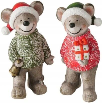 Figurka świąteczna znakomicie prezentować się będzie pod choinką, na kominku jak i na półce. Misie podkreślą świąteczny charakter świąt oraz sprawią radość nie tylko naszym pociechom ale wszystkim domownikom. Wykonane zostały z ceramiki dzięki czemu wyglądają wyjątkowo. Parametry: Wysokość: 21 cm Szerokość: 11 cm Kolor: wielokolorowy Ozdoba Świąt Bożego Narodzenia Cena dotyczy 1 szt.
