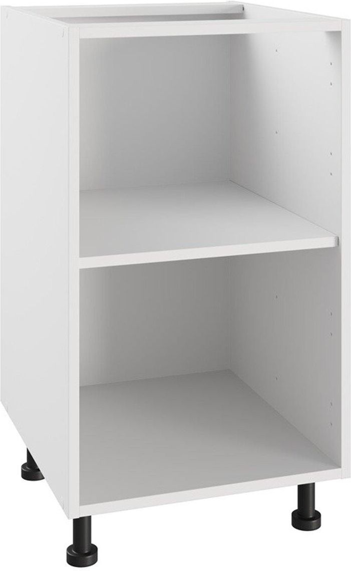 Korpus dolny 45 cm biały mat Korpus dolny wykonany jest z trwałego materiału, czyli płyty laminowanej, która jest przystosowana do warunków panujących w kuchni. Uniwersalny biały matowy kolor pozwala na wykonanie frontów w takim samym kolorze, ale można także bez problemu poeksperymentować z innymi barwami. Do montażu frontu potrzebujemy 2 szt. zawiasów 110 stopni. Produkt zapewnia bardzo dużą wygodę użytkowania, jest funkcjonalny i pomieści wiele naczyń czy przyborów, dzięki czemu w naszej kuchni zapanuje porządek. Szerokość korpusu wynosi 45 cm, wysokość 87 cm i głębokość 51 cm.