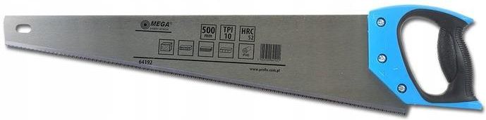 Piła płatnica do drewna Mega 6419X - Piła płatnica marki Mega to produkt który spełnia wysokie wymagania w pracowniach stolarskich i firmach budowlanych - Piła posiada hartowane zęby o twardości 50-54 HRC - Rękojeść zbudowana jest z dwuskładnikowego tworzywa oraz posiada wkładkę antypoślizgową dzięki czemu chwyt się nie ześlizguje - Płatnica nadaje się do cięcia wykańczającego, do drewna, płyty wiórowej, sklejki, laminatu i plastiku - Ilość zębów: 10 zębów na cal - Dostępne są też płatnice z mniejszą ilością zębów na cal: 64090, 64091, 64092 Kod produktu: 64190 EAN: 5903755641908