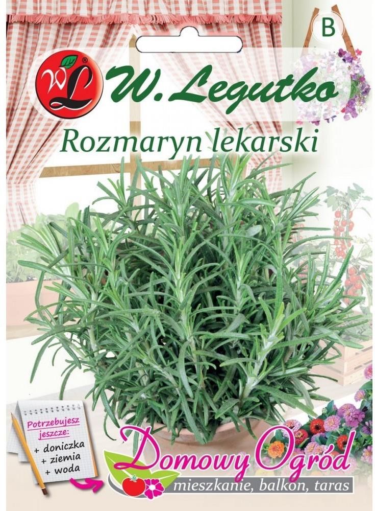Seria nasion " Domowy Ogród" umożliwia stworzenie własnego ogródka w doniczce, pojemniku lub skrzyce. Postępując zgodnie z instrukcja znajduącą się na opakowniu przekonasz się jak w łatwy sposób moża uprawiać rośliny w mieszkaniu na balkonie czy tarasie. Bez potrzeby posiadania ogródka będziesz miał dostęp do własnych warzyw i ziół. Rozmaryn jest rośliną wieloletnią. Młode liście oraz końcówki pędów o charakterystycznym korzennym zapachu stosuje się jako dodatek do potraw mięsnych, sałatek warzywnych, zup i sosów.Przed wysiewem nasion włóż je do lodówki na 7 dni.Wysiewaj nasiona od kwietnia do maja. Wartość przyprawową osiąga od czerwca do września.