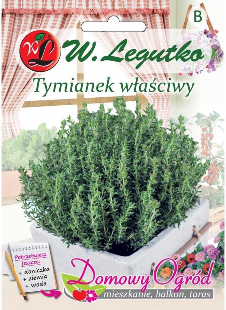 Seria nasion " Domowy Ogród" umożliwia stworzenie własnego ogródka w doniczce, pojemniku lub skrzyce. Postępując zgodnie z instrukcja znajduącą się na opakowniu przekonasz się jak w łatwy sposób moża uprawiać rośliny w mieszkaniu na balkonie czy tarasie. Bez potrzeby posiadania ogródka będziesz miał dostęp do własnych warzyw i ziół. Tymianek jest rośliną wieloletnią. Stosowany jest jako roślina przyprawowa do mięs, serów i zup oraz jako roślina lecznicza ma nerwobóle, wspomaga trawienie. Lubi stanowisko słoneczne.Wysiewaj nasiona od kwietnia do maja. Wartość przyprawową roślina osiąga od maja do sierpnia.