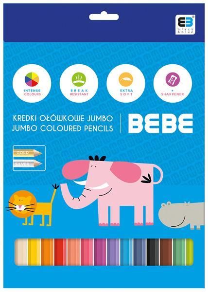 Szczegóły produktu: kredki Jumbo, 12 intensywnych kolorów, w tym złoty i srebrny, temperówka w zestawie, trójkątny profil kredki, supermiękkie i niełamliwe, dwie wersje kolorystyczne opakowania. Cena dotyczy 1 sztuki, opakowanie produktu występuje w różnych wariantach kolorystycznych, zawartość pozostaje ta sama.