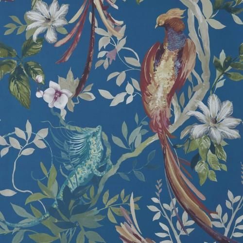 Tapeta 1838 Wallcoverings Pavilion 2109-157-04 Przyciągający wzrok wzór tapety autorstwa angielskiej firmy 1838 Wallcoverings z kolekcji Pavilion przypomina modę na chinoiserie w gronie angielskich arystokratów przez cały XVIII wiek. Urzekające ptaki siedzą wśród gałęzi z bujną roślinnością, …