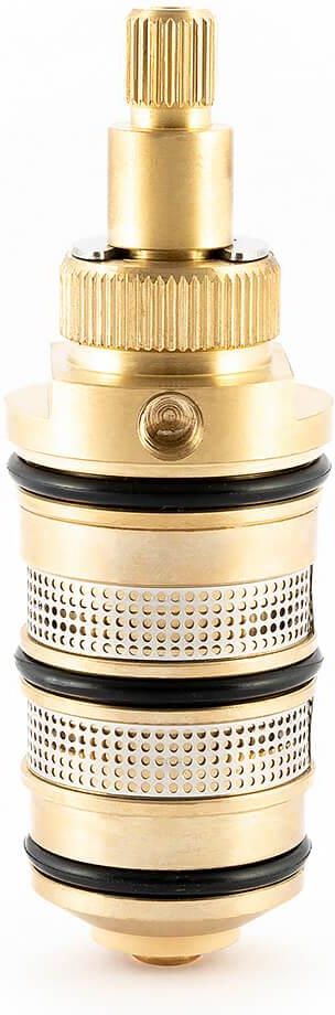 Termostat do panelu prysznicowego. Cechy i konstrukcja. Ten termostat do panelu prysznicowego wykonany jest z mosiądzu podczas gdy wiele modeli w podobnej cenie wyprodukowano ze stopów różnych metali wątpliwej jakości. W związku z tym głowica odporna jest na wahania temperatur obecne podczas używania panelu lub innej armatury. Zdecydowanie zwiększa to żywotność termostatu marki SANNIT. Poza tym głowica GT-03S posiada filtry wykonane ze stali nierdzewnej. Zabezpieczają one wnętrze głowicy przed dostawaniem się większych osadów z kamienia lub rdzy. Sercem tej głowicy jest bimetal o bardzo dobrej precyzji mieszania który równocześnie, ekspresowo reaguje na zmianę nastawu temperatury. Wszystkie wspomniane cechy sprawiają że ten model termostatu to produkt wysokiej jakości. Zastosowanie. Głowica SANNIT służyć może jako termostat do panelu prysznicowego ale nie jest to jej jedyne zastosowanie. Ten model można stosować także w bateriach termostatycznych, zestawach podtynkowych a także zestawach natynkowych i innej armaturze. Warunkiem zastosowania tego termostatu w dowolnym z wymienionych urządzeń jest zgodność pod kątem wymiarów. W związku z tym aby dopasować głowicę do swojej armatury należy porównać wymiary posiadanego termostatu z wymiarami przedstawionymi na rysunku dotyczącym głowicy GT-03S.