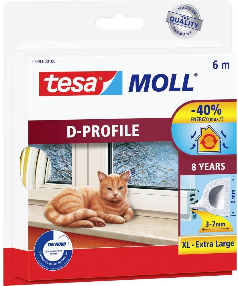 tesa D-Profil 05393-00100-01 Taśma uszczelniająca tesamoll® biały ( x ) 6 m x 9 mm 6 m Taśma uszczelniająca tesamoll® D-profil 05393-00100-01 biały ( x ) 6 m x 9 mm Technical specifications: Długość produktu: 6 m · Grubość: 7 mm · Grubość materiału: 7 mm · Kolor: biały · Seria taśmy klejącej: …