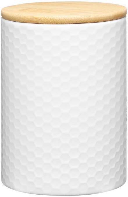Pojemnik kuchenny Tuvo z bambusową pokrywką biały 1,1 l AMBITION Gdy trwałość łączy się z designerskim wdziękiem, rodzi się pojemnik kuchenny z dolomitu - doskonały na przechowywanie wszelkich produktów sypkich. Jego szczelna pokrywa utrzymuje świeżość żywności na dłużej, a elegancki design doskonale komponuje się z nowoczesnym wystrojem kuchni. Wielofunkcyjność pojemnika sprawia, że świetnie sprawdzi się także jako schowek na ciastka. Solidne materiały użyte do produkcji gwarantują odporność na uszkodzenia i łatwość czyszczenia. To niezbędny element każdej kuchni, który pozwoli cieszyć się zaletami przechowywania w pojemnikach z dolomitu. Marka: Ambition Długość [cm]: 11 Szerokość [cm]: 11 Wysokość [cm]: 15.7 Pojemność [ml]: 1110 Kształt: Okrągłe Kolekcja: Tuvo Materiał: Bambus,Dolomite,Silikon Średnica [cm]: 11 Kolor: biały