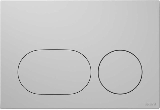 Cersanit Dueto przycisk spłukujący do WC chrom mat K97-0636 EAN: 5901771162001 Przycisk DUETO propozycja dla wszystkich, którzy poszukują nowoczesnych rozwiązań do łazienki, które wpisują się w nienachalny minimalizm. Przystosowanie do spłukiwania w systemie dwudzielnym zapewni oszczędność wody. Powierzchnia klawiszy jest zlicowana z powierzchnią płytki głównej, dzięki czemu przycisk zyskał nowoczesny wygląd. Model wykonano z tworzywa w kolorze chrom matowy Przycisk pasuje do stelaży podtynkowych AQUA i SYSTEM (K97-524; K97-526; K97-525). Współpracuje z FRESH SYSTEM, który jest idealnym rozwiązaniem w powiązaniu z bezkołnierzową technologią CleanOn, gdzie brak kołnierza nie wyklucza stosowania środków odświeżających. To kompletne, nowoczesne rozwiązanie gwarantuje kompleksową higienę w toalecie. Dopracowana konstrukcja przycisku zapewnia łatwy i szybki montaż. Rysunek techniczny