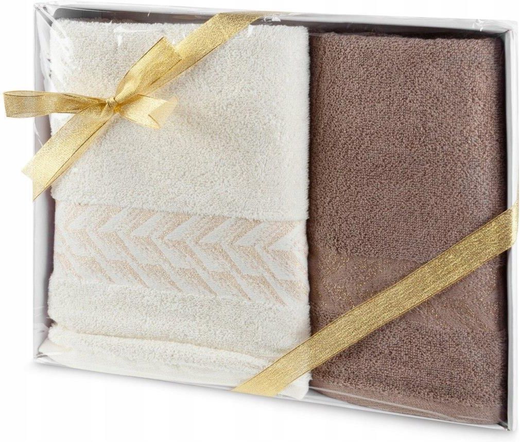 Eurofirany Komplet Ręczników W Pudełku Glow 50X90 70X140 Kremowy Brązowy Jasny 450G/M2 1Szt. Chełm