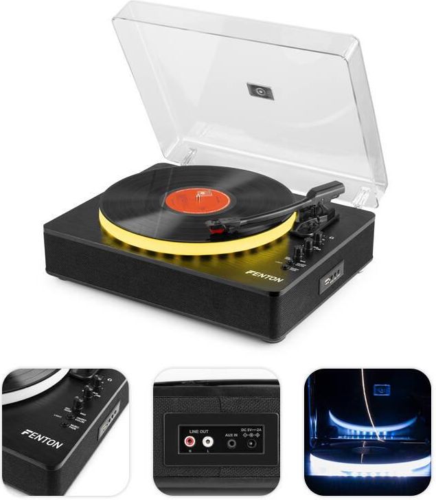 Gramofon z głośnikami oświetlenie LED Kod produktu: 102.123 Gramofon RP162LED z wejściem/wyjściem BT, czarny Gramofon RP162LED marki Fenton to wyjątkowy gramofon wyposażony w najnowocześniejsze technologie. Ten trzybiegowy gramofon może odtwarzać płyty z prędkością 33, 45 i 78 obr./min oraz posiada nowoczesną drewnianą obudowę w połączeniu z luksusowym wykończeniem z tkaniny. Łączy się bezprzewodowo z głośnikami, słuchawkami i innymi urządzeniami wyposażonymi w technologię bezprzewodową BT lub z przewodowymi systemami audio i aktywnymi głośnikami. Dzięki wbudowanemu odbiornikowi BT muzykę cyfrową można także bezprzewodowo przesyłać strumieniowo ze smartfonu, tabletu PC lub innego urządzenia kompatybilnego z BT i słuchać jej przez głośniki stereo. Pierścień LED wokół gramofonu dopełnia Twoje wrażenia. Delikatny pierścień LED zmieniający kolor jest zarówno świąteczny, jak i relaksujący i można go łatwo włączać i wyłączać. W zestawie winyl gratis! Bluetooth (odbiornik/nadajnik) RP162 to coś więcej niż tylko wysokiej jakości gramofon. Funkcja Bluetooth sprawia, że ​​jest to odtwarzacz płyt Bluetooth. Dzięki temu możliwe jest używanie gramofonu jako głośnika Bluetooth. Podłącz telefon lub tablet do RP162 i odtwarzaj muzykę ze Spotify lub YouTube, na przykład, przez wbudowane głośniki. Możesz też podłączyć słuchawki lub głośnik Bluetooth do odtwarzacza i cieszyć się ulubioną muzyką na swój sposób. 3 prędkości + automatyczne zatrzymanie RP162 jest wyposażony w przełącznik umożliwiający ustawienie 3 prędkości. Odtwarzacz nadaje się zatem do wszystkich płyt winylowych. Dla singli dołączony jest adapter/krążek. Funkcja automatycznego zatrzymania zapobiega niepotrzebnemu obracaniu się płyty na końcu, aby zapobiec niepotrzebnemu zużyciu. Odtwarzacz i nagrywarka MP3 USB Oprócz odtwarzacza płyt i głośnika Bluetooth, RP162 jest także odtwarzaczem i nagrywarką MP3. Umieść listę odtwarzania na pamięci USB i podłącz pamięć do złącza USB gramofonu. Wewnętrzny odtwarzacz MP3 gwarantuje, że Twoja playlista będzie odtwarzana w głośnikach. Chcesz zdigitalizować swoją dokumentację? To także możliwe! Dzięki pamięci USB podłączonej do USB możesz szybko i łatwo digitalizować swoje nagrania, aby móc je zabrać ze sobą w podróż. Pomysłowy system zawieszania Gramofon wyposażony jest w pomysłowy system zawieszenia. Za pomocą sprężyn cały moduł odtwarzający „wisi” nad obudową, dzięki czemu wibracje zewnętrzne nie spowodują od razu przeskakiwania igły. W ten sposób możesz słuchać płyty bez żadnych zmartwień i nie musisz się martwić, że igła przeskoczy przy najmniejszej rzeczy. Wyjście liniowe i słuchawkowe Właściwie nie jest to konieczne, ponieważ dźwięk wbudowanych głośników RP162 jest już bardzo dobry. Można jednak podłączyć odtwarzacz do zewnętrznego systemu dźwiękowego. Z gramofonem RP162 nie stanowi to żadnego problemu. Odtwarzacz wyposażony jest w wyjście liniowe RCA, które umożliwia podłączenie odtwarzacza do dowolnego zestawu stereo. Czy wolisz słuchać w ciszy i nie przeszkadzać innym? Następnie podłącz słuchawki i ciesz się ulubionym albumem lub wykonawcą. Ręczne lub automatyczne zatrzymanie ramienia (włącznik/wyłącznik). Wbudowane pełnozakresowe głośniki stereo. Wysokiej jakości gramofon ze zmieniającymi kolor diodami LED RGBW. Opis produktu: Wysokiej jakości gramofon ze zmieniającymi kolor diodami LED Diody LED RGBW pod gramofonem (wł./wył.) Wbudowane pełnozakresowe głośniki stereo Odbiornik i nadajnik BT 5.0 do bezprzewodowego przesyłania strumieniowego audio 3 prędkości dla płyt 33 1/3, 45 i 78 obr./min, w tym. adapter Ręczne lub automatyczne zatrzymanie ramienia (włącznik/wyłącznik) Odtwarza płyty 7", 10" i 12" Bezpośrednie kodowanie USB i odtwarzanie USB Wejście AUX 3,5 mm Kontrola wysokości Mechanizm gramofonu napędzany paskiem Ceramiczna wkładka stereo z igłą Wyjście słuchawkowe Do każdego zakupionego gramofonu dokładamy winyl gratis! Dane techniczne: Kolor produktu Czarny Opcje odtwarzania Przesyłanie strumieniowe BT 5.0, winyl, USB, wejście liniowe Złącza wejściowe Jack 3,5 mm, USB Połączenia wyjściowe Jack 3,5 mm, RCA Ustawienia prędkości (RPM) 33, 45, 78 Zasilanie 100-240VAC 50/60Hz (zasilacz 5V) Wymiary (dł. x szer. x wys.) 365x 410x 145mm Waga 3,65kg