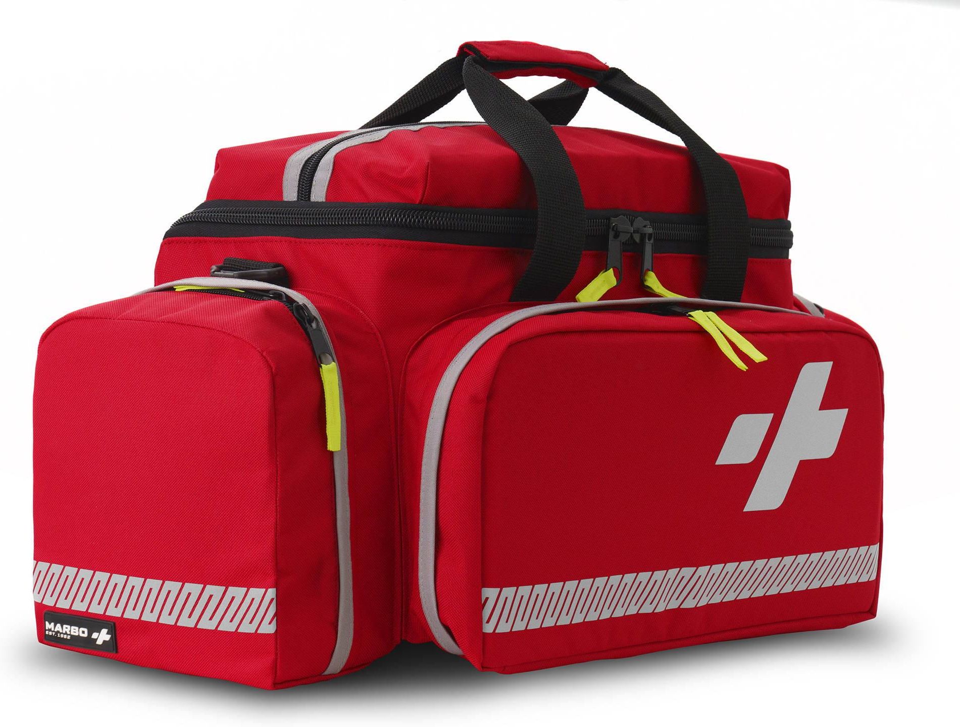 TRM-58_2.0 - profesjonalna torba medyczna o pojemności 47l, wykonana z wytrzymałego i wodoodpornego materiału poliestrowego 600/600. Wnętrze torby wykonane z łatwo zmywalnego Nylonu 210D.Torba medyczna, zaprojektowana z myślą o maksymalnej funkcjonalności i łatwej organizacji, oferuje: Wejście w kształcie litery „U” – szybki dostęp do zawartości komory głównej. Komora główna z przegrodami, gumowymi uchwytami oraz czterema saszetkami segregacyjnymi na rzep w różnych kolorach, co ułatwia organizację. Sześć kieszeni zewnętrznych: Dwie boczne – idealne do przechowywania ciśnieniomierza, stetoskopu lub pojemnika na igły. Kieszeń górna – przeznaczona na dodatkowe wyposażenie z łatwym dostępem. Przednia kieszeń z ampularium na 30 ampułek, przezroczystą folią i gumowymi uchwytami, oraz trzy otwarte kieszenie z siatki. Tył torby z płaską kieszenią na zamek – dla dodatkowych drobnych przedmiotów. Jaskrawe uchwyty przy suwakach – umożliwiają szybkie i łatwe otwieranie torby. Regulowany, odpinany pas nośny z antypoślizgowym naramiennikiem dla wygody noszenia. Uszy z taśmy spinane rączką – do wygodnego trzymania torby w dłoni. Gumowe stopki na dnie – stabilizują torbę i chronią ją przed zabrudzeniami. Odporne materiały – chronią torbę przed wilgocią, brudem i uszkodzeniami. Elementy odblaskowe – zwiększają widoczność ratownika w nocy. Wymiary torby: Wysokość: 30 cm Szerokość: 57 cm Długość: 25 cm Torba to doskonałe rozwiązanie do przechowywania sprzętu medycznego w sposób uporządkowany, wygodny i bezpieczny.ość ratownika w nocy. Wymiary: Wysokość- 30 cm, Szerokość - 57 cm, - Długość 25 cm