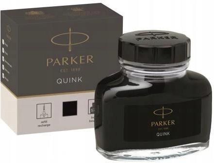 Atrament Parker w buteleczce w kolorze czarnym. Do używania atramentu w buteleczce niezbędny jest tłoczek. Pojemność: 57 ml
