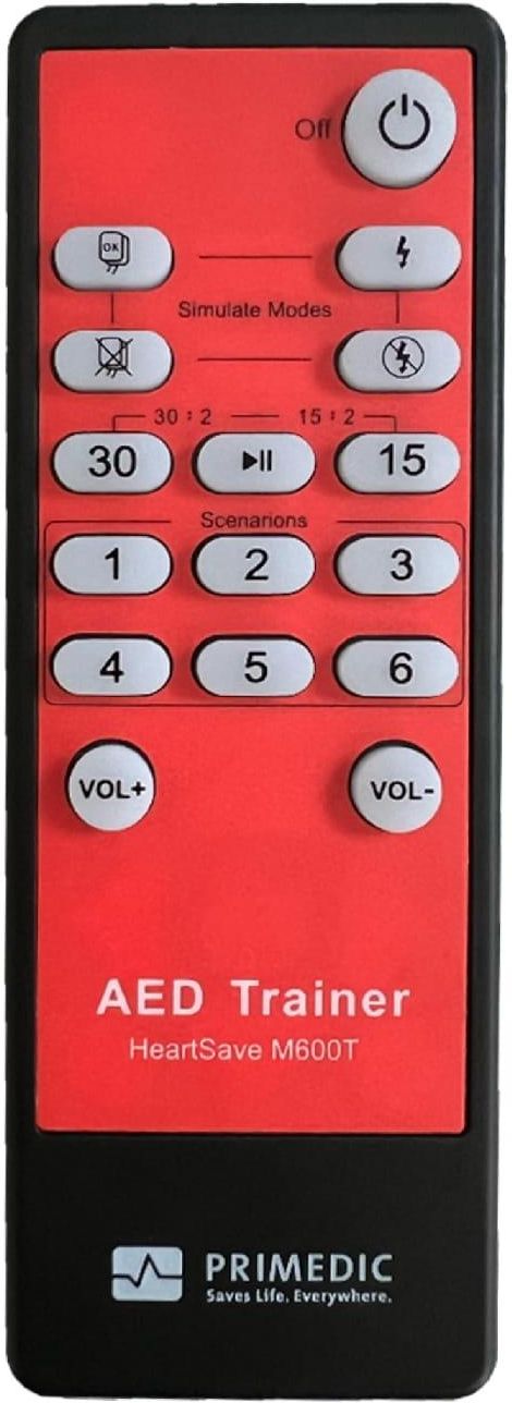 pilot (wymagane baterie 2x AAA) Pilot do defibrylatora treningowego HeartSave Y/YA Trainer to funkcjonalne urządzenie umożliwiające zdalne zarządzanie scenariuszami szkoleniowymi w trakcie ćwiczeń z defibrylatorem HeartSave Y/YA Trainer. Dzięki niemu instruktor może łatwo zmieniać tryby pracy, symulować różne rytmy serca oraz sytuacje awaryjne, co pozwala na realistyczne i skuteczne przygotowanie uczestników do udzielania pierwszej pomocy. Intuicyjny interfejs sprawia, że obsługa pilota jest szybka i wygodna, wspierając płynność i profesjonalizm szkolenia. (wymagane baterie 2x AAA)