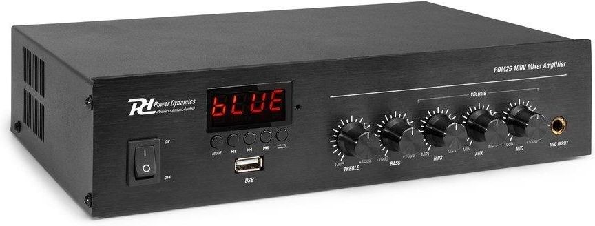Powermixer USB MP3 BT FM 100V 25W PD PDM25 PRO Gdzie sprawdzi się najlepiej? sklepy, salony fryzjerskie, butiki snack bary, pizzerie, małe restauracje biura, gabinety lekarskie, dentystyczne, fizjoterapeutyczne poczekalnie, recepcje, siłownie Wzmacniacz 100V Bluetooth MP3 USB FM PDM25 – do …