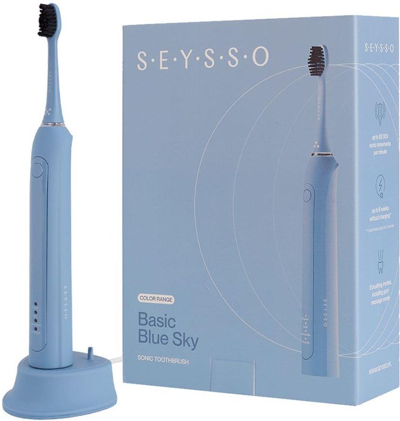 SEYSSO Basic Color Blue Sky szczoteczka soniczna Poznaj nową szczoteczkę soniczną z serii SEYSSO Color w przepięknym jasnoniebieskim kolorze. Wyposażona w 3 programy pracy szczoteczka SEYSSO Basic Color zatroszczy się o najważniejsze potrzeby Twojej jamy ustnej. Do 82 000 ruchów …
