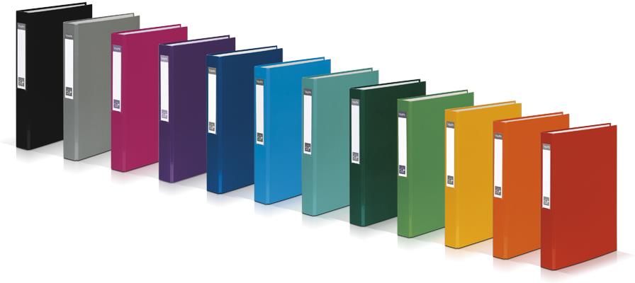 SPECYFIKACJA TECHNICZNA wykonany z twardej 1,8mm tektury kolorowa oklejka pokryta folią polipropylenową z połyskiem wyklejka papierowa do formatu A4 szerokość grzbietu 25 mm mechanizm ringowy o wysokości 16 mm na 2