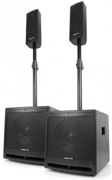 Jedna z wizytówek firmy Vonyx. System dźwiękowy VX1000BT Active 1000W 2.2 z bluetooth. Nagłośnienie sceniczne imprezowe USB SD BT 1000W Aktywny zestaw nagłośnieniowy VX1000BT marki Vonyx, charakteryzuje się profesjonalnym dźwiękiem i wysoką jakością wykonania. Cała moc pochodzi z aktywnego, 10" subwoofera wyposażonego we wzmacniacz, który przekazuje ją do podłączonych kolumn /satelit oraz pasywnego, drugiego subwoofera. Całość ma nowoczesny design i jest na tyle lekka, że może stanowić bardzo dobre rozwiązanie do zastosowań mobilnych, np.: do nagłośnienia koncertów, pokazów, dla DJ'ów. Zestaw jest też idealną propozycją do zastosowań scenicznych, mobilnych, w klubach, salach wykładowych, weselnych, itp. Otrzymujemy w pełni wyposażony, kompletny system, który wystarczy złożyć, podłączyć do zasilania i cieszyć się swoją ulubioną muzyką. Centralnym elementem VX1000BT jest wzmacniacz dużej mocy o mocy 1000W wbudowany w jeden z subwooferów. Ten potężny wzmacniacz obsługuje zarówno 10-calowe subwoofery, jak i 2x 2,5-calowe satelity. Dzięki temu, że zestaw wyposażony jest w dwa głośniki niskotonowe i dwa topy, uzyskuje się optymalne rozłożenie dźwięku zarówno na poziomie wysokim, jak i niskim. Dostarczone słupki pośrednie zapewniają możliwość podniesienia obu satelit na odpowiednia wysokość, co dodatkowo poprawia rozprzestrzenianie się dźwięku. Głośność subwooferów można regulować oddzielnie satelit, dzięki czemu balans między topami a głośnikami niskotonowymi można dostosować całkowicie do własnych upodobań. Za pomocą ustawień wysokich i niskich tonów cały obraz dźwiękowy można dostosować do potrzeb w celu uzyskania optymalnej reprodukcji dźwięku. Źródła dźwięku i funkcje Wzmacniacz Vonyx VX1000BT jest wyposażony w kilka przydatnych opcji, które sprawiają, że korzystanie z VX1000BT jest bardzo wszechstronne. Najwygodniejszą opcją jest wbudowany odbiornik Bluetooth. Dzięki temu możliwe jest nawiązanie bezprzewodowego połączenia między zestawem a np. telefonem lub tabletem. Muzykę odtwarzaną na telefonie lub tablecie można słuchać bezprzewodowo za pośrednictwem zestawu VX1000BT. Pomyśl o YouTube, Spotify itp. Dzięki wbudowanemu odtwarzaczowi MP3 możesz łatwo i szybko odtwarzać muzykę z pamięci USB lub karty SD na zestawie. Ponownie nie ma potrzeby podłączania oddzielnych urządzeń. Funkcję odtwarzacza Bluetooth i USB można łatwo kontrolować za pomocą dostarczonego pilota. Dla DJ-ów dostępne jest wejście AUX do podłączenia miksera lub kontrolera Midi. Oczywiście do tego wejścia AUX można podłączyć również inne urządzenia, takie jak laptop, odtwarzacz CD, odtwarzacz DVD, komputer itp. Dzięki dołączonemu mikrofonowi zestaw nadaje się również od razu do wygłaszania przemówień, pokazów, szkoleń, warsztatów , itp. efekt, oprócz mowy, zestaw może służyć również do śpiewania, a nawet karaoke. Idealny dla mobilnych Dj-ów oraz śluby Oprócz 6 kanałów PDM-M604A, ma siódmy kanał. Ten kanał zawiera wbudowany odbiornik Bluetooth i odtwarzacz MP3, USB. Odbiornik Bluetooth, umożliwia bezprzewodowe połączenie np. z telefonem lub tabletem. Muzyka odtwarzana na sparowanym urządzeniu, jest przesyłana bezprzewodowo do miksera, po czym może zostać włączona do końcowego miksu. To samo dotyczy odtwarzacza MP3, który umożliwia odtwarzanie muzyki MP3 bezpośrednio z pamięci USB. Opcjonalnie złącze USB, można również wykorzystać do nagrywania. Ostateczny miks jest zapisywany cyfrowo w formacie MP3 na pendrive. Opis produktu 1000W Plug & Play speaker kit 2x 10" Subwoofer (aktywny i pasywny) 2x Top każdy z 2.5" średniotonowym driverem i 2.5" tweeterem W zestawie kabel głośnikowy NL2 W zestawie 2x prosty statyw łączący urządzenia (130-160cm) W zestawie mikrofon przewodowy Odbiornik Bluetooth Port USB oraz slot na arty SD do odtwarzania MP3 Wejście mikrofonowe 6.3mm Jack Wejście: Stereo RCA i liniowe 6.3mm Jack Efekt echa dla mikrofonu Kontrola niskich i wysokich tonów Dane techniczne Moc wyjściowa: 1000W (2x 400W + 2x 100W) Pasmo przenoszenia: 40Hz - 20kHz Głośniki: 2x 2.5" średniotonowe + 2.5" wysokotonowe SPL max.: 128dB Subwoofer: 10" Top hat: 35mm Zasilanie: 230VAC/ 50Hz Wymiary: Subwoofer: 390x 370x 405mm Głośnik/satelita: 125x 140x 390mm Waga zestawu: 36kg