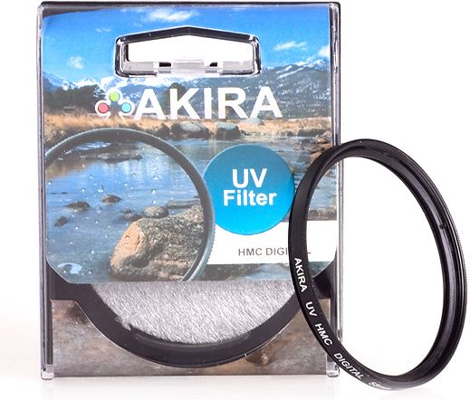 Filtry UV HMC (Multi Coated) firmy Akira produkowane są w Japonii, przy użyciu wysokiej jakości materiałów. Posiadają powłoki antyrefleksyjne, które zapewniają wysoki poziom transmisji światła. Filtry wykonane są ze szkła optycznego, idealnie pasują do wszystkich aparatów analogowych, cyfrowych oraz lustrzanek.Podstawowe zadania filtrów UV:* zabezpieczają obiektyw przed czynnikami zewnętrznymi chroniąc go przed brudem, kurzem , odciskami palców, zarysowaniami czy uszkodzeniami,* odcinanają promieniowanie ultrafioletowe, co pozwala uzyskać lepsze nasycenie kolorów oraz poprawić kontrast zdjęć zwłaszcza przy słonecznej pogodzie,* tworzą ostry i dokonały kontrast pomiędzy krajobrazem, niebem i chmuramiFiltry marki Akira posiadają 24 miesięczną gwarancję !!!