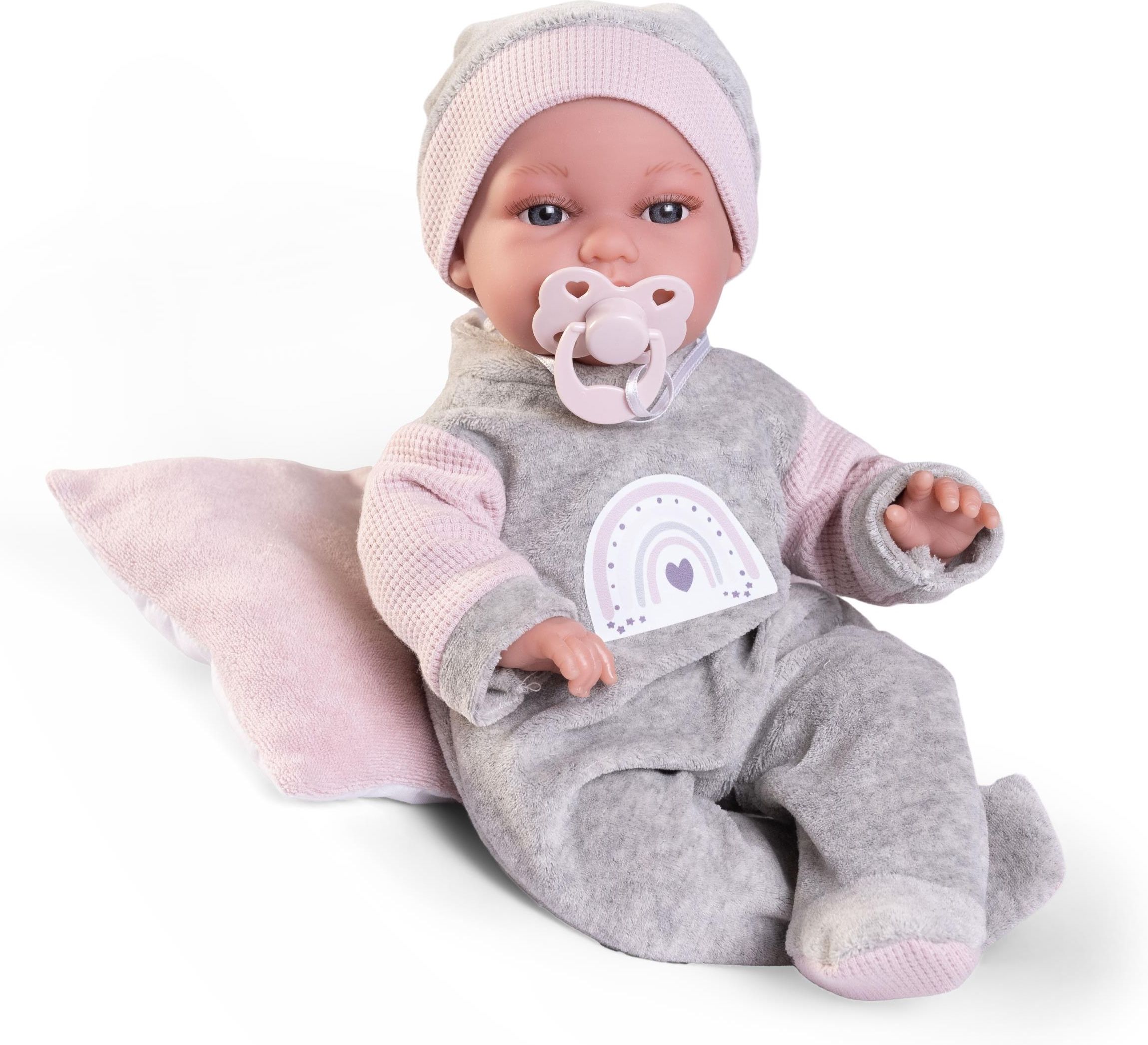 Lalka hiszpańska Baby Toneta Posturitas Antonio Juan 70363 – idealny towarzysz zabawy Lalka Baby Toneta Posturitas 34 cm Antonio Juan 70363 to wyjątkowy produkt, który łączy w sobie funkcjonalność i estetykę. Ta niezwykle realistyczna lalka posiada miękki brzuszek oraz charakterystyczną pogodną twarzyczkę z niebieskimi oczkami ozdobionymi długimi rzęsami. Realistyczne wykonanie i możliwość ustawienia w dowolnej pozie Jednym z wyróżniających elementów tej lalki jest specjalny wewnętrzny stelaż z drucików, który umożliwia posadzenie laleczki oraz ujęcie jej w dowolnej pozie. Dziecko może swobodnie manipulować lalką, co rozwija jego kreatywność i zdolności manualne. Wysoka jakość wykonania - ręcznie wykonana w Hiszpanii Produkty Antonio Juan są wykonane ręcznie w całości w Hiszpanii, co gwarantuje najwyższą jakość i dbałość o każdy detal. Malowane brwi, usta, paznokcie oraz fałdki na skórze sprawiają, że lalka Baby Toneta wygląda niezwykle realistycznie. Komplet z akcesoriami i ubraniami Lalka Baby Toneta ubrana jest w: Mięciutkie, różowo-szare śpioszki z tęczową aplikacją Elastyczną, dwukolorową czapeczkę wykonaną z łączonych tkanin Do zestawu dołączono smoczek na tasiemce oraz pluszową poduszkę Bezpieczna zabawa dla dzieci od 3 lat Baby Toneta Posturitas Antonio Juan 70363 jest przeznaczona dla dzieci w wieku od 3 lat. Lalka posiada certyfikaty bezpieczeństwa, dzięki czemu rodzice mogą być pewni, że zabawka jest w pełni bezpieczna dla ich pociech. Zalety Lalki Baby Toneta Posturitas Specjalny stelaż wewnętrzny umożliwiający ustawienie lalki w dowolnej pozie Realistyczny wygląd dzięki szczegółowo wykonanym włoskom, brwiom, ustom i paznokciom Miękki brzuszek, co sprawia, że lalka jest idealna do przytulania Szyte ręcznie ubranka i akcesoria Produkt wykonany ręcznie w całości w Hiszpanii Bezpieczna zabawa dzięki posiadanym certyfikatom bezpieczeństwa Odpowiednia dla dzieci od 3 lat Lalka Baby Toneta Posturitas Antonio Juan 70363 to wyjątkowy prezent dla każdej miłośniczki zabawek. Idealnie sprawdzi się do rozwijania wyobraźni i zdolności manualnych dziecka, oferując niekończące się możliwości zabawy. Do sprawdzenia