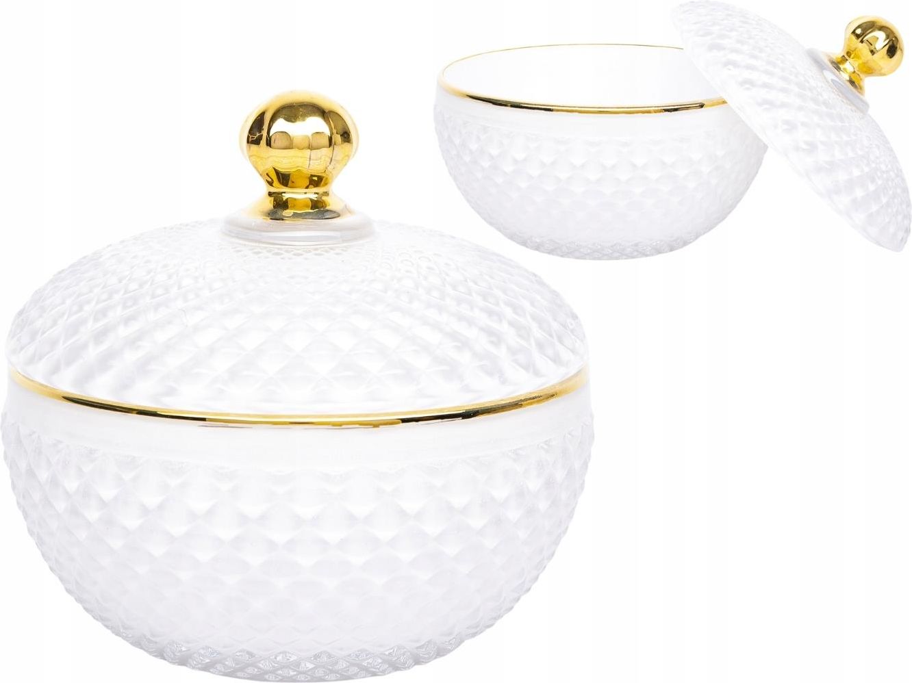 Art-Pol Szklany pojemnik dekoracyjny na waciki biało złoty 11x12x12 Chełmek