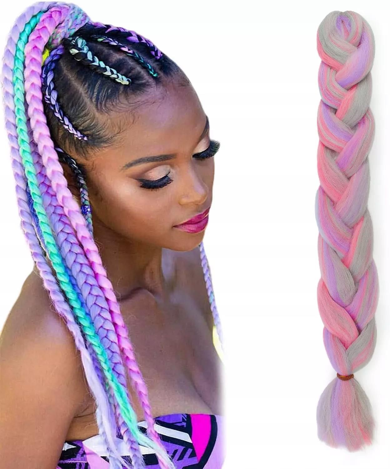 Beautiona Włosy Syntetyczne Warkocze Pastelowe Kolorowe Chełmek