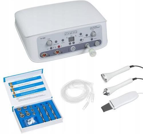 Kombajn kosmetyczny 3w1 BR-1890 to specjalistyczny sprzęt dla salonów SPA i gabinetów medycyny estetycznej, który wykonuje aż 3 zaawansowane zabiegi pielęgnacyjne, oraz terapeutyczne. Trzy podstawowe funkcje które w każdym salonie kosmetycznym są bazą działalności!. Urządzenia kosmetyczne dla salonów muszą spełniać najwyższe standardy bezpieczeństwa, Kombajn kosmetyczny 3w1 BR-1890 gwarantuje Twoim Klientom 100% komfort oraz wysoką skuteczność zabiegów. Funkcje: Mikrodermabrazja diamentowa, w zestawie 2 pióra, 8 końcówek diamentowych oraz jedna gładka do masażu, Ultradźwięki / ultrasonoforeza, Skin Scrubber (peeling kawitacyjny), Technikę dermabrazji mikrokrystalicznej opracował 20 lat temu włoski inżynier Florence Mattioli. Początkowo wykorzystywana wyłącznie w gabinetach dermatologicznych, technika ta stopniowo zaczęła zdobywać popularność w salonach kosmetycznych. Określana jest mianem najlepszej metody na piękno poprzez medycynę. Przez kilka lat technikę dermabrazji mikrokrystalicznej doskonalono w Europie. Znane są tysiące przypadków udanych kuracji, a osiągane efekty są bardzo zadowalające. Obecnie przedstawiamy aparat do dermabrazji diamentowej, będącej twórczym udoskonaleniem dermabrazji mikrokrystalicznej. Dermabrazja diamentowa to bezinwazyjny zabieg wygładzania skóry przy użyciu sterylnych ostrzy diamentowych, które ścierają wierzchnią warstwę skóry. Starte resztki, brud i martwy naskórek są automatycznie odsysane. Zabieg pozwala usunąć złuszczenia, nierówności, skazy, zmarszczki oraz niepożądane przebarwienia skóry. Umiarkowane użycie dermabrazji diamentowej w połączeniu z kosmetykami przenikającymi głęboko przez naskórek do warstwy skóry właściwej pomaga uzupełnić poziom naturalnych składników odżywczych, przywrócić aktywność skóry i ją wzmocnić. Skóra po zabiegu dermabrazji mikrokrystalicznej jest zazwyczaj zdrowa, lśniąca i piękna. Funkcja ultradźwiękowa. Wykorzystanie wibracji ultradźwiękowych o częstotliwości miliona drgań na sekundę (1 MHz). Fala ultradźwiękowa stymuluje tkankę i poprawia przenikalność błon dla kolagenu, wygładzając zmarszczki, eliminując linie i ujędrniając skórę, co nadaje jej młodszy i zdrowszy wygląd. Ultradźwięki wytwarzają ciepło pochodzące z tarcia, które poprawia cyrkulację krwi, odpręża mięśnie i pomaga rozbijać cellulit, usuwając nadmiar tłuszczu. Urządzenie z 2 sondami umożliwia bezinwazyjny lifting, wygładza i wzmacnia skórę przy użyciu wibracji ultradźwiękowych. Skin scrubber - peeling kawitacyjny (Ultrasonic peeling) jest to nowy system do głębokiej pielęgnacji skóry i jej regeneracji bez efektów ubocznych. Zabieg ten polega na oczyszczeniu skóry poprzez fale ultradźwiękowe, pozwala więc na dokładne usunięcie nadmiaru sebum z porów i mieszków włosowych, pozbycie się zrogowaciałego naskórka, zaskórników, wągrów i bakterii. Peeling kawitacyjny jako system działa na skórę łagodnie poprzez przyjemne, naturalne wibracje bez użycia prądu elektrycznego. Zastosowanie tego urządzenia pozwala na głęboką regenerację skóry poprzez błyskawiczne i efektywne jej odnowienie oraz oczyszczenie na dużej głębokości, czego rezultatem jest - zauważalna w widoczny sposób - skóra odnowiona i odświeżona. Jest to zabieg bezbolesny odczuwany zwykle jako przyjemny. Kawitacja pozytywnie działa również na głębsze warstwy naskórka, stanowi doskonały wstęp do dalszych zabiegów kosmetycznych (eksfoliacja kwasami i/lub sonoforeza i jonoforeza i inne). Dane techniczne: Moc pompy: 65cmHg Częstotliwość ultradźwięków: 1MHz Częstotliwość peelingu: 28kHz Zasilanie: 220V Pobór mocy: 48W Waga: 5kg Wymiary urządzenia: 38x29x13cm, Wymiary opakowania: 51x35x20cm, Gwarancja: 12 miesięcy