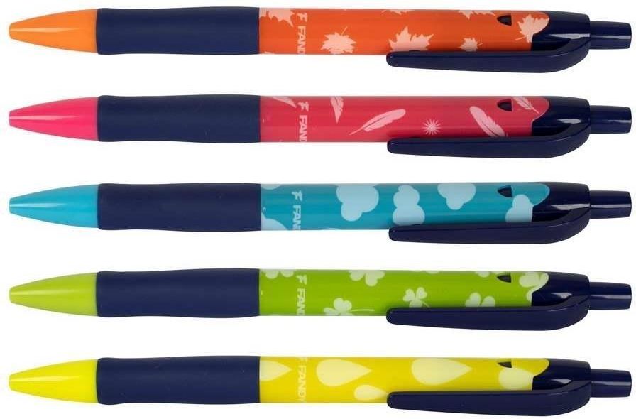 Plastikowy długopis, automatyczny, ergonomiczna obudowa z uchwytem antypoślizgowym, wymienny wkład F-411, niebieski kolor tuszu, grubość linii 0,7 mm, miks kolorów w opakowaniu zbiorczym Rok wydania: 2022 Opakowanie: pudełko
