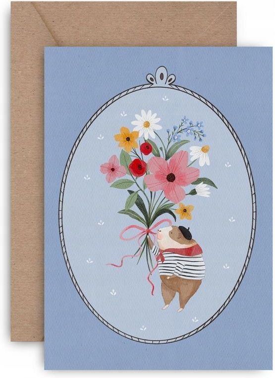 KARTKA Z PODZIĘKOWANIEM - MERCI Wydawca: GRUPA KREATYWNA EAN: 5906438541281 Kartka z podziękowaniem Merci Uroczy sposób na wyrażenie wdzięczności Kartka Merci to idealny wybór, by podziękować komuś w wyjątkowy sposób. Dzięki swojemu uniwersalnemu charakterowi sprawdzi się również jako kartka na urodziny, imieniny czy inne ważne okazje, kiedy chcemy wywołać uśmiech na twarzy obdarowanego. Artystyczna ilustracja pełna wdzięku Ręcznie malowany akwarelą wzór autorstwa Agnieszki Kumańskiej przedstawia uroczą świnkę morską w eleganckim, francuskim stroju, z ogromnym bukietem kwiatów w łapkach. Subtelne detale jak beret, pasiasta koszulka i serdeczny wyraz twarzy emanują ciepłem i radością, idealnie wyrażając wdzięczność i życzliwość. Specyfikacja produktu: Format kartki: 12x17 cm Papier: najwyższej jakości papier o gramaturze 300 g W zestawie: koperta w stylu kraft Zaprojektowano i wyprodukowano w Polsce Wnętrze kartki pozostaje puste, dając przestrzeń na Twoje osobiste podziękowania lub życzenia, które uczynią ją jeszcze bardziej wyjątkową. Wyjątkowe podziękowanie na każdą okazję Kartka Merci to nie tylko forma wdzięczności, ale także drobny gest, który z pewnością zostanie zapamiętany. Jej artystyczny design i urokliwa ilustracja sprawiają, że stanie się piękną pamiątką, która wywoła uśmiech na twarzy osoby obdarowanej. [Kod oferty,666661,5906438541281,2024-12-20 12:47:55]