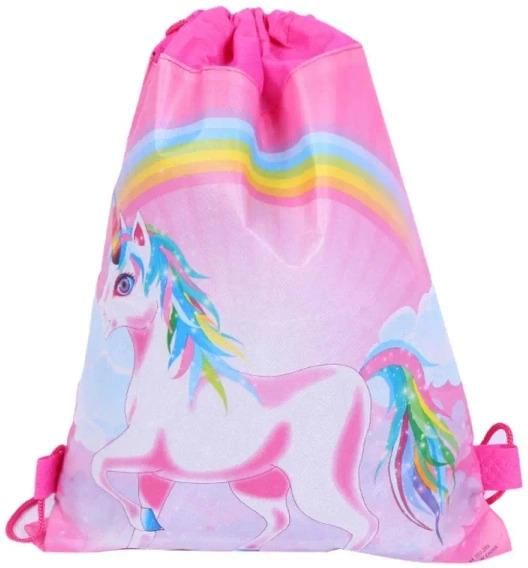 WOREK SZKOLNY Z JEDNOROŻCEM RÓŻOWY 35X27 CM Praktyczny worek z uroczym motywem jednorożca to doskonały dodatek dla dzieci do przedszkola, szkoły oraz na zajęcia dodatkowe.