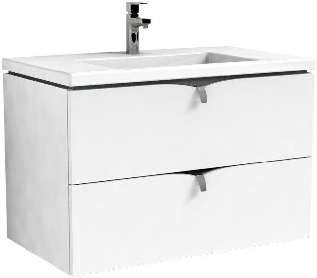 Szafka z umywalką o szerokości 80 cm w kolorze biały połysk z dwiema szufladami.