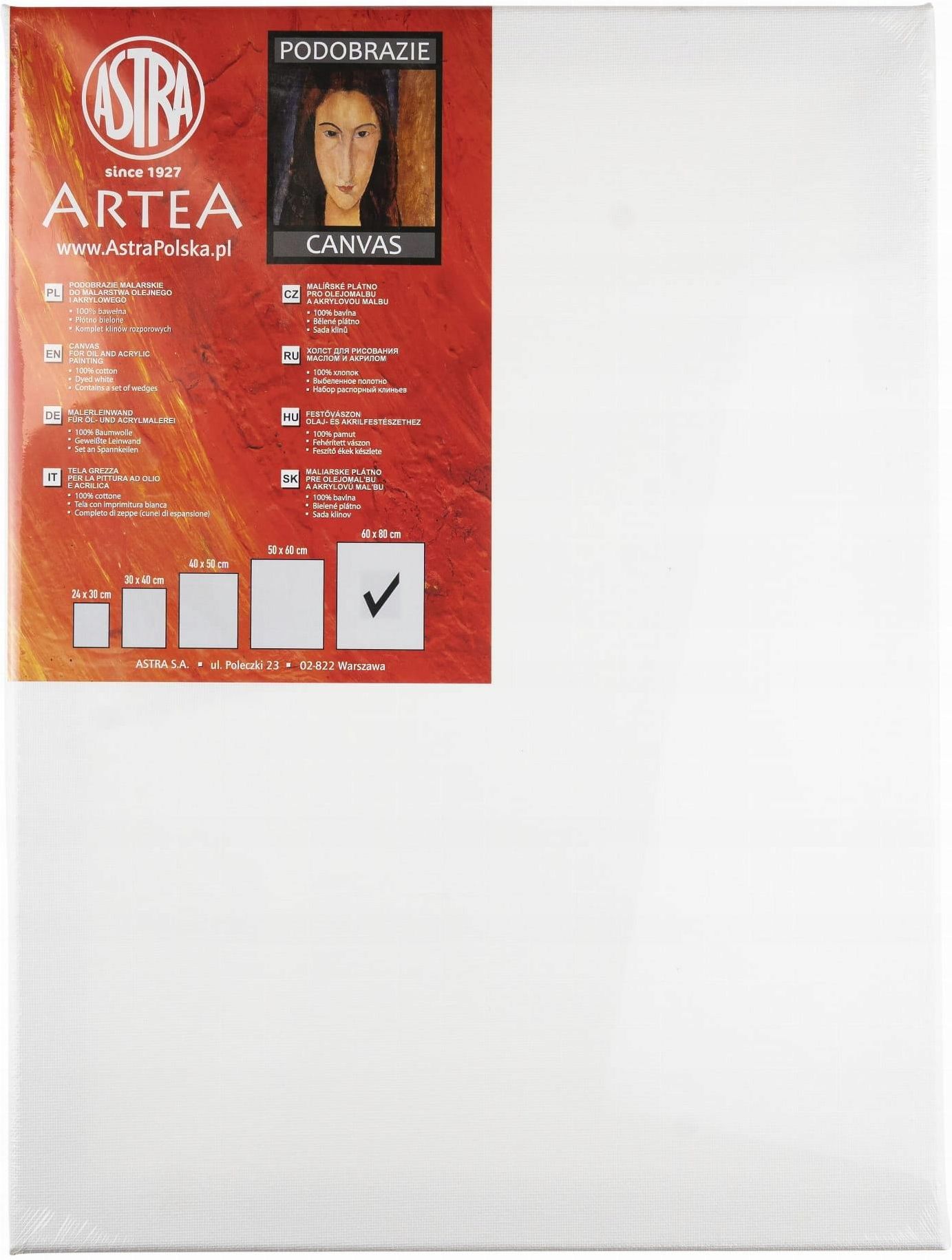 Podobrazie malarskie ASTRA ARTEA - 60x80 cm Podobrazie malarskie ASTRA ARTEA to wysokiej jakości płótno przeznaczone do malowania farbami olejnymi i akrylowymi. Wykonane z bawełny o odpowiedniej gramaturze, zapewnia doskonałe krycie i trwałość prac artystycznych. Solidna rama z drewna jodłowego gwarantuje stabilność, a umieszczone z tyłu zszywki zapewniają estetyczne wykończenie. Cechy produktu • Przeznaczone do malowania farbami olejnymi i akrylowymi • Wykonane z bawełny o gramaturze 280 g/m², pokrytej uniwersalnym gruntem • Solidna rama z lekkiego drewna jodłowego • Zszywki umieszczone z tyłu ramy dla estetycznego wykończenia • Zestaw zawiera komplet klinów rozporowych