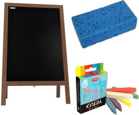 Kredowy potykacz MAGNETYCZNY 118x61cm na magnesy Potykacz MAGNETYCZNY stojak kredowy 118x61 cm POWIERZCHNIA - wykorzystywanym materiałem jest magnetyczna blacha kredowa. Można pisać po niej markerami kredowymi oraz kredą. Tablice czyścimy za pomocą wilgotnej szmatki lub gąbki. Najważniejsze, powierzchnia jest w pełni magnetyczna. Dzięki temu przypniemy do niej magnesy (zarówno klasyczne jak i neodymowe) jak i inne magnetyczne rzeczy. RAMA - potykacz wykonany jest z wysokiej jakości drewna. Zostało ono polakierowane, co zapewnia mu elegancki brązowy kolor, zachowując przy tym naturalną strukturę drewna i układ słojów. WYKORZYSTANIE - stojak kredowy jest doskonałym nośnikiem reklamy i informacji. Dzięki powierzchni wielokrotnego użytku, można umieszczać tam na bieżąco informacje o lokalu, aktualne menu, specjalne oferty, wskazówki na temat dotarcia do lokalu lub firmy. UNIWERSALNY - potykacz reklamowy pasuje do każdego miejsca! Wykorzystasz go w: restauracji, firmie, lokalu, barze, kawiarni, kwiaciarni, lodziarni. Jest też świetną tablicą do wykorzystania w domu, jako tablica kreatywna dla dziecka! GOTOWY DO UŻYCIA - potykacz jest gotowy do użycia natychmiast po wyjęciu z pudełka. Nie musisz nic skręcać, sklejać ani łączyć! Zapewniamy komfortowe i łatwe użytkowanie! POLSKA PRODUKCJA - nasz potykacz to produkt w pełni zaprojektowany i wyprodukowany w Polsce. Stworzony z pasją, co zapewnia wysoką jakość i dbałość o szczegóły. Jest niezawodnym rozwiązaniem dla Twojej firmy! Wymiary szerokość całkowita: 61 cm wysokość całkowita: 118 cm rozmiar wewnętrzny: 80x53 cm szerokość listwy: 4 cm grubość listwy: 2 cm wysokość nóżki: 30 cm W zestawie znajduje się również łańcuszek połączeniowy! Magnetyczna powierzchnia Sercem potykacza jest magnetyczna kredowa blacha. Pozwala ona na ozdabianie potykacza klasycznymi magnesami, magnesami ozdobnymi, pamiątkowymi, neodymowymi. Do potykacza idealnie pasuje również magnetyczna ramka ALLboards, dzięki której przypniemy do potykacza dokumenty, ulotki czy też menu. Po potykaczu można oczywiście również pisać kredą oraz markerami kredowymi! Uniwersalny i praktyczny Potykacz firmy ALLboards jest bardzo uniwersalny. Możesz wykorzystać go wszędzie gdzie tylko zechcesz, w szczególności: w restauracji w sklepie w kawiarni w kwiaciarni w pubie w barze Jego elegancki wygląd pasuje również do wykorzystania wewnątrz firmy czy też prywatnego domu! Nośnik informacji Dzięki potykaczowi przekażesz swoim Klientom wszystkie niezbędne informacje: informacje o swoim lokalu menu specjalne oferty wskazówki na temat dotarcia do lokalu/firmy Nic nie stoi na przeszkodzie, aby potykacz ozdobić również przykuwającymi uwagę rysunkami! UWAGA: Potykacz należy chronić przed deszczem i złymi warunkami atmosferycznymi! GĄBKA, 10 KOLOROWYCH MAGNESÓW I BIAŁY MARKER SUCHOŚCIERALNY GRATIS!