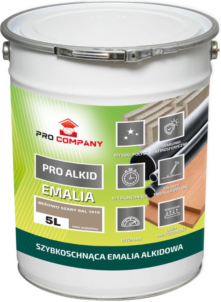 PRO ALKID szybkoschnąca emalia alkidowa 5l Beżowo szary RAL 1019 Chełmek
