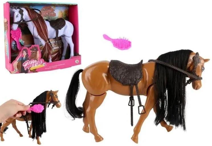 Ożyw swoją kolekcję lalek i przenieś zabawę do świata jeździectwa dzięki realistycznemu konikowi z długą, lśniącą grzywą. Ten pięknie wykonany koń to idealny dodatek do zestawu akcesoriów każdej miłośniczki zwierząt i konnych przygód. Wyjątkowy design i dopracowane detale sprawiają, że zabawa staje się jeszcze bardziej realistyczna, pobudzając wyobraźnię dziecka. Koń został wyposażony w solidne siodło oraz uzdę, które pozwalają na pełne przygotowanie go do przejażdżek. Dodatkowo, zestaw zawiera szczotkę do pielęgnacji grzywy, dzięki czemu możesz czesać i stylizować jego długie włosy według własnych pomysłów. Gładka powierzchnia figurki i starannie dobrane materiały sprawiają, że zabawka jest przyjemna w dotyku i trwała. Dzięki odpowiednim wymiarom koń pasuje do lalek o standardowej wielkości, co pozwala na jeszcze większą różnorodność zabawy. To świetny pomysł na prezent dla dzieci uwielbiających konie i kreatywne odgrywanie scenek. Specyfikacja: Materiał: wysokiej jakości tworzywo sztuczne Akcesoria w zestawie: siodło, uzda, szczotka do grzywy Długa, realistyczna grzywa i ogon do czesania Przeznaczony dla dzieci od 3. roku życia Funkcje: Pobudza kreatywność i rozwija wyobraźnię Możliwość czesania i stylizacji grzywy Pasuje do lalek w standardowym rozmiarze Solidna konstrukcja zapewnia trwałość zabawki Wymiary: 285x235 mm Grupa wiekowa: 3+ Opakowanie: pudełko