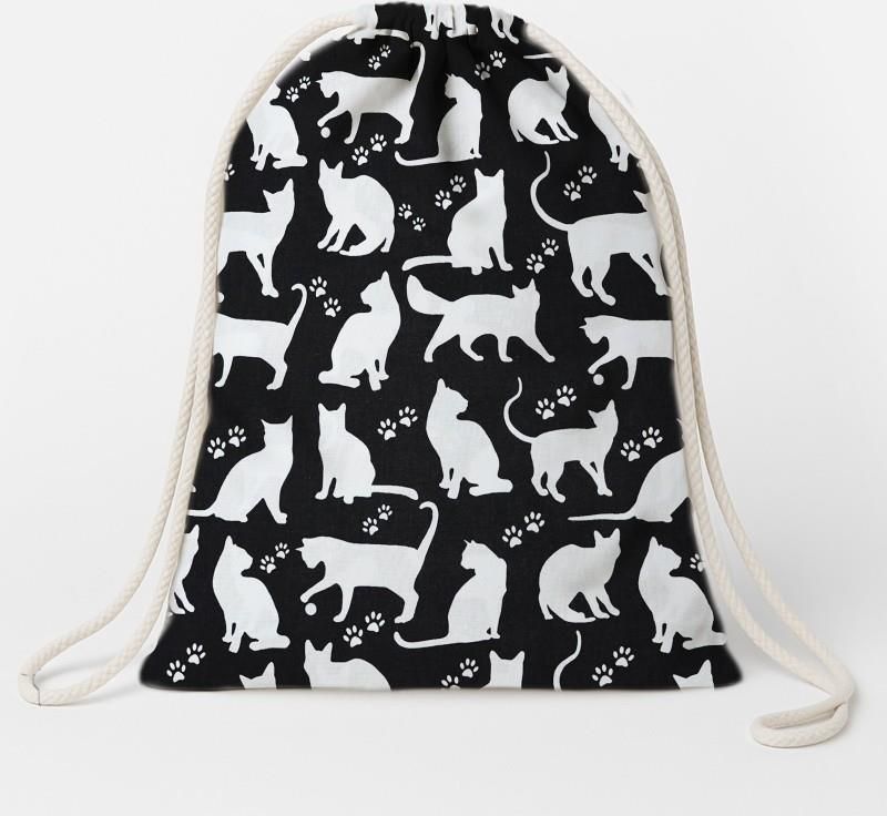 Szycie Z Pasją Plecak Worek Bawełniany Dla Dzieci Czarne Tło Białymi Kotami Chełmek