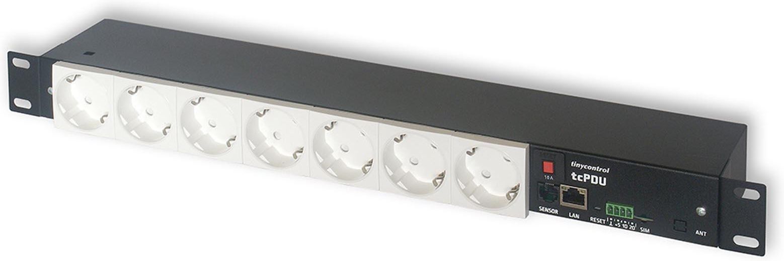 Tinycontrol tcPDU LTE (06288) to listwa zasilająca w standardzie Rack 19 cali, wyposażona w 7 niezależnie zarządzanych gniazd (typu F, Schuko) podłączonych do napięcia sieciowego 230 V. Zarządzanie listwą może odbywać się za pośrednictwem wbudowanego serwera www lub protokołu SNMP lub MQTT przez …