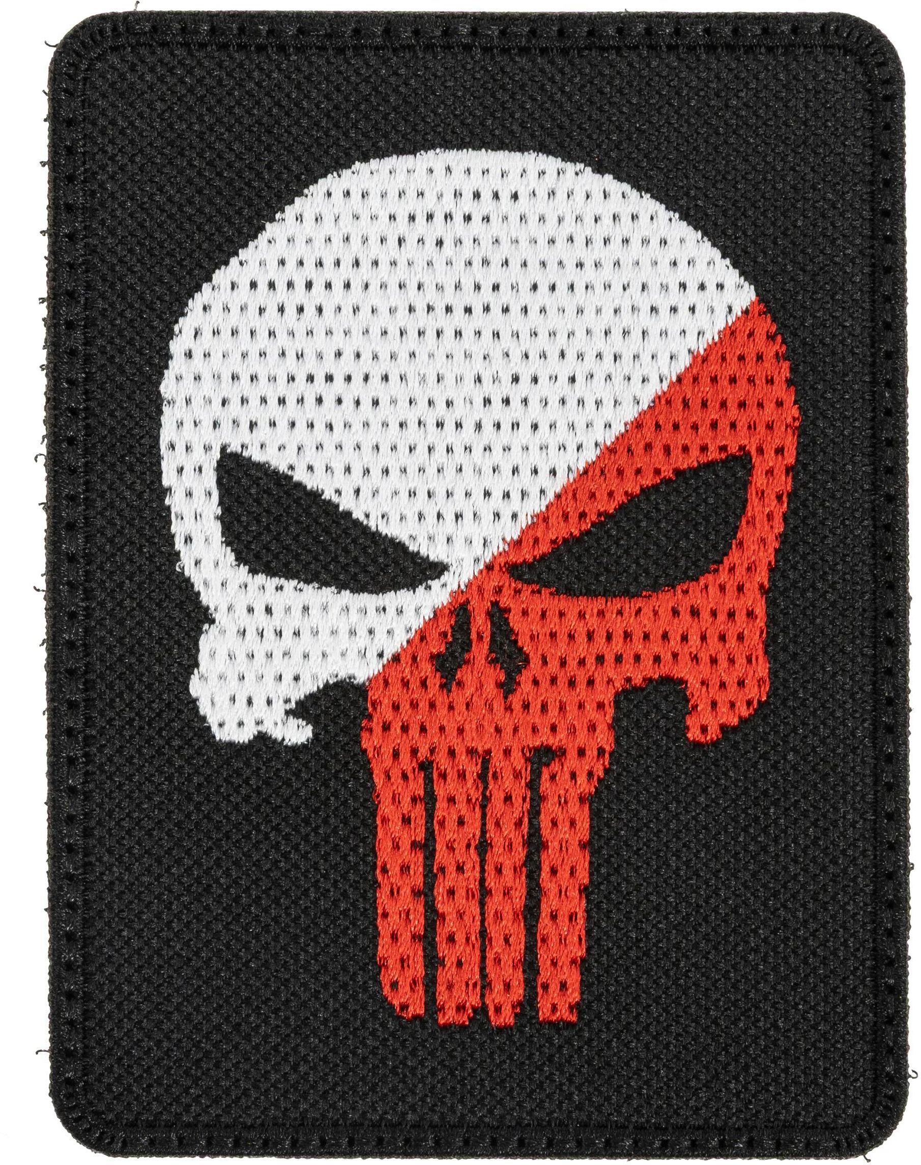 Haftowana naszywka przedstawiająca czaszki Punishera. Została obszyta, aby zapobiec strzępieniu się materiału. Może być noszona na kurtce, bluzie lub kamizelce. Emblemat nadaje się do przyszycia na odzieży lub oporządzeniu. Dzięki przyszytemu rzepowi naszywkę można szybko przyczepić i odczepić, co umożliwia sprawną zmianę ich pozycji lub zamianę na inne wzory.