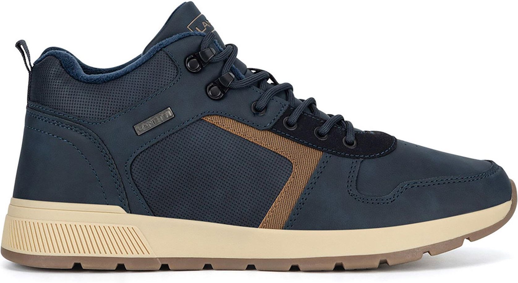 Szukasz trzewików, które łączą styl z funkcjonalnością? Oto granatowy model od marki Lanetti, idealny dla mężczyzn, ceniących wygodę i elegancję! Wykonane z wysokogatunkowego tworzywa syntetycznego, te buty są trwałe i odporne na ewentualne uszkodzenia. Sznurowanie zapewnia doskonałe dopasowanie butów do stóp, a ocieplone wnętrze gwarantuje komfort termiczny w chłodniejsze dni. Uniwersalny kolor sprawia, że trzewiki te łatwo dopasują się do różnych stylizacji, zarówno casualowych, jak i bardziej eleganckich. Wybierz Lanetti i ciesz się niezawodnością oraz stylem na co dzień! Wyjątkowa marka Lanetti skierowana do mężczyzn projektuje i produkuje wysokiej jakości buty z klasą, które będą towarzyszyły Ci w codziennym życiu, ale też i podczas najważniejszych okazji. W ofercie marki Lanetti dostępne są męskie buty i torby w stylu smart casual. Charakteryzują się wysoką jakością wykonania, a w projektach wykorzystuje się wytrzymałe i trwałe materiały, które wpływają na komfort noszenia. Niezobowiązująco eleganckie listonoszki i aktówki oraz szeroka oferta modnych sneakersów, to doskonała baza dla modnych miejskich stylizacji współczesnego mężczyzny. Produkty Lanetti idealnie komponują się z dżinsami i koszulą, a nawet z nowoczesnym garniturem. Wybierz model dla siebie!