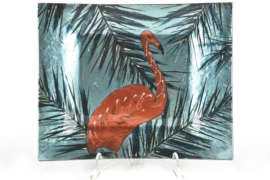 Piękny, ręcznie malowany talerz dekoracyjny przedstawiający flaminga na ciekawym tle. Dekor pod szkliwem sprawia, że talerz łatwo utrzymać w czystości. Jego powierzchnia jest dość gładka i z połyskiem. Bardzo uroczy i jednocześnie funkcjonalny element dekoracji domu. Podstawkę można skompletować z innymi produktami kolekcji o tym samym wzorze. Na spodzie podstawki umieszczone są miękkie, antypoślizgowe stopki, dzięki którym mamy pewność, że produkt nie zarysuje żadnej powierzchni. Podstawka od spodu jest w kolorze czarnym. Szklane ozdoby od wieków goszczą w każdym domu. Nie może zabraknąć także tego elementu dekoracji. Ten cudowny niuans upiększy stół, ławę, komodę i inne powierzchnie płaskie. Jest ozdobą zarówno w wersji solo, jak również z dodatkami, które będą towarzyszyć malowanemu szkiełku. Za pomocą stojaka (do kupienia osobno) talerz można ustawić w wersji pionowej, lekko pochylonej np. w przeszklonej witrynie czy pod ścianą. Będzie prezentować się bardzo efektownie. Nikt nie przejdzie obojętnie obok tak pomysłowej dekoracji. Talerz dekoracyjny śmiało posłuży jako świecznik lub podstawka na drobne gadżety. Ten szklany zdobnik to cudowny pomysł na prezent. Sprawdź inne rozmiary i modele tej serii!!! Stwórz kompozycję, która najbardziej Ci odpowiada.