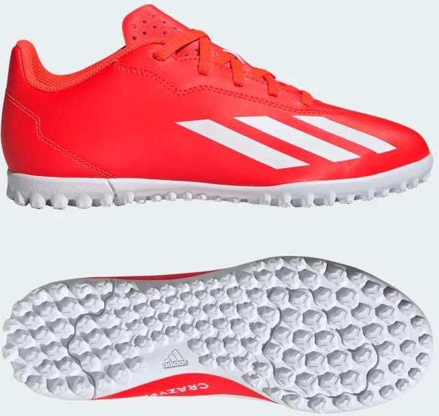Sklep ZAKUPY MAAWSPORT OFERUJE Rozmiar 34 | 21 cm Buty piłkarskie adidas X Crazyfast Club TF IF0708 w kolorze czerwonym to perfekcyjny wybór dla młodych i ambitnych piłkarzy, poszukujących profesjonalnego obuwia, które wspiera ich grę na sztucznej nawierzchni. Produkowane przez renomowaną firmę Adidas, buty te łączą w sobie zaawansowaną technologię i styl, aby zapewnić maksymalną wydajność na boisku. Jedną z głównych zalet tych butów piłkarskich jest ich guma podeszwa, która jest specjalnie zaprojektowana do gry na sztucznej trawie. Zapewnia ona odpowiednią przyczepność, pozwalając na szybsze przyspieszenia i gwałtowne zmiany kierunków, co jest nieocenione w dynamicznej grze.