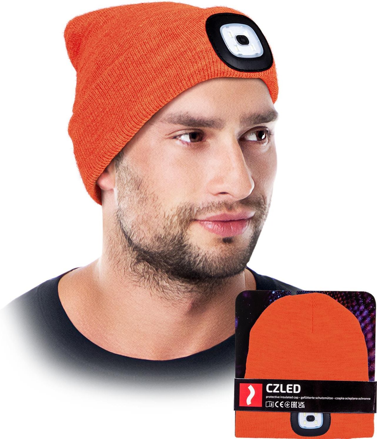 Agro-Mar Toruń Czapka Zimowa Ocieplana Polarem Z Latarką Led Ładowalna Usb Pomarańczowa Chełmno