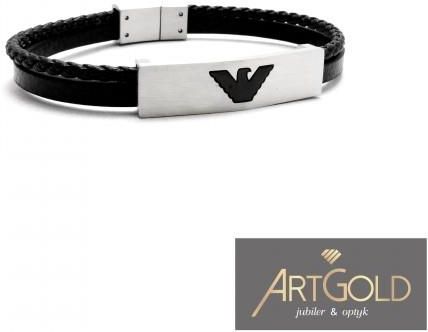 ARTGOLD BRANSOLETKA SKÓRZANA ZE STALOWYMI ELEMENTAMI Chełmno