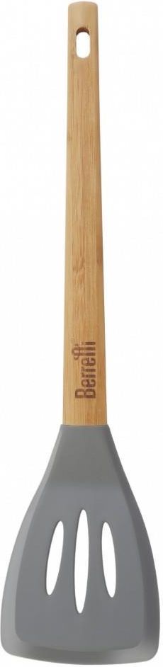 Uniwersalna łopatka / szpatułka cedzakowa BERRETTI NATUR GREY 33 cm – silikon + bambus Najważniejsze cechy Łopatka nowa, oryginalnie zapakowana – gwarancja jakości. Modny design NATUR GREY – eleganckie połączenie naturalnego bambusa i nowoczesnego silikonu. Rączka z bambusa z otworem do zawieszenia …