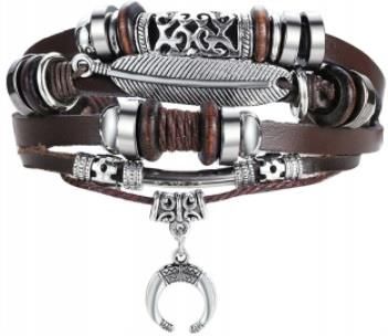 Bransoletka skórzana Składa się z pięciu pasków, który można ustawić jednym węzłem Standardowy rozmiar pasuje na nadgarstek 18 cm z możliwością regulowania Waga 26 g Kolor brązowy Wykonana ze skóry Posiada metalowe ozdobne elementy Idealny pomysł na prezent Świetnie nadaje się dla chłopaka jak i dziewczyny Zapraszamy serdecznie do zakupów !