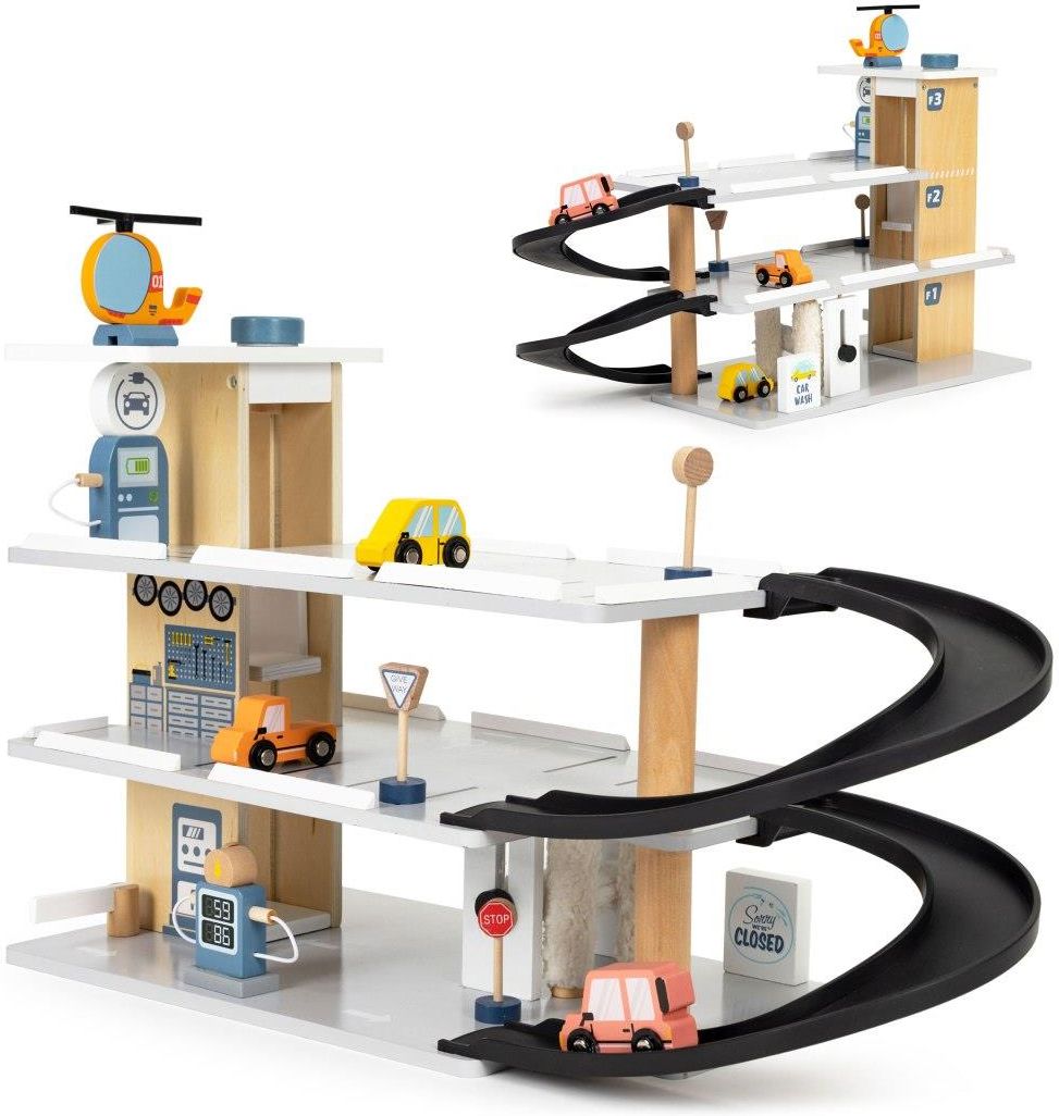 Ecotoys Duży Drewniany Garaż Parking Z Windą + Autka Helikopter Myjnia Chełmno