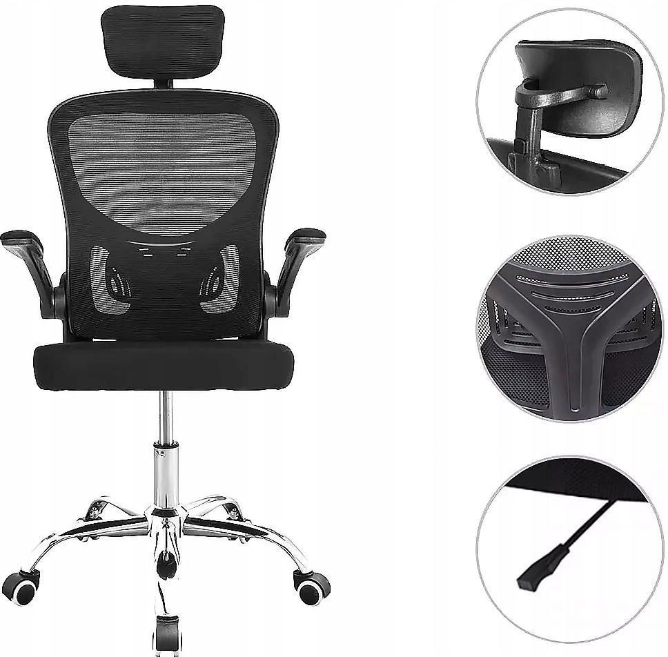FOTEL OBROTOWY BIUROWY KRZESŁO DO BIURKA MIKROSIATKA CZARNY REGULOWANY Fotel przeznaczony dla osób o wzroście: 150cm - 185cm Ergonomiczne oparcie – system podparcia pleców dopasowuje się do naturalnych krzywizn kręgosłupa. Regulowany zagłówek – wspiera szyję i kark, redukując napięcie mięśniowe …