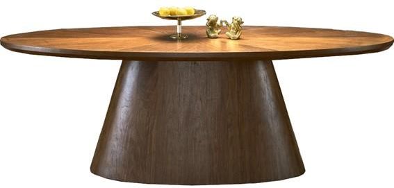 Stół VAGNER 98x220 Brązowy Owalny Nowoczesny Salon Kuchnia Jadalnia Najwyższej jakości materiały sprawiają, że model ten wyróżnia się trwałością i odpornością na różnego rodzaju uszkodzenia. Jego wygląd i jakość nie zmienią się, nawet po długim okresie użytkowania. Elegancka i ponadczasowa kolorystyka sprawia, że mebel ten stanie się ozdobą każdego pomieszczenia, a dodatkowo będzie jednym z funkcjonalnych elementów wyposażenia. Nowoczesna forma, to właśnie dzięki niej każde pomieszczenie zyska uroku i stanie się zachwycające. Specyfikacja Kategoria: Stoły Miejsce przeznaczenia: Kuchnia/Jadalnia, Salon Wysokość [cm]: 76 Szerokość [cm]: 98 Głębokość [cm]: 220 Styl: Nowoczesny Materiał mebla: Płyta MDF Materiał blatu: Okleina naturalna, Płyta MDF Rodzaj nóg: Drewniane Kolor: Odcienie brązu, Orzech Kształt blatu: Owalny Producent: Halmar FAQ - najczęściej zadawane pytania Czy produkt jest skręcony? - Nie. Dzięki temu jest łatwiejszy do przetransportowania i mniej podatny na uszkodzenia. Samo złożenie zajmuje dosłownie chwilkę. Czy mebel nada się również do innych pomieszczeń? - Tak. Jest to kwestia indywidualnego uznania. Czy produkt był używany? - Nie. Jest to nowy produkt, który magazynujemy w oryginalnym kartonie. numer katalogowy: V-CH-VAGNER-ST