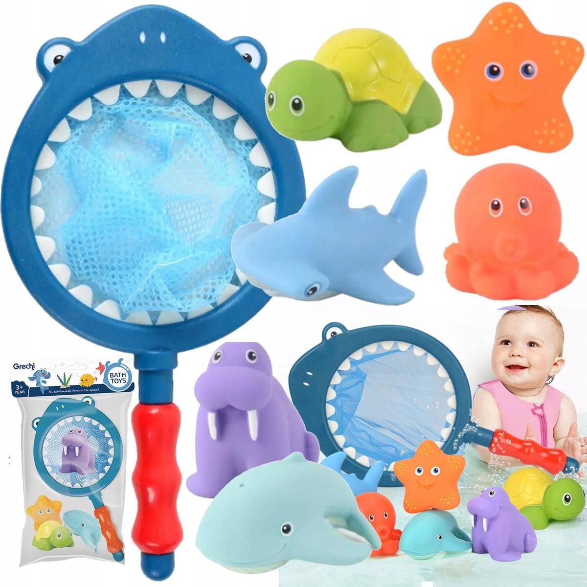 ŁOWIENIE RYBEK DUŻA WĘDKI ZABAWKA REKIN DO KĄPIELI WANNY WODY DLA DZIECI ▶️ Zestaw zabawek do kąpieli ⭐ Twoje dziecko nie przepada za kąpielą w wannie? ⭐ Znamy sposób, który skutecznie zmieni jego nastawienie! ⭐ Zestaw zabawek do kąpieli sprawi, że maluch polubi spędzać czas w wodzie! ▶️ Zalety produktu: ✅ Elastyczny i bezpieczny materiał ✅ Figurki w różnych kolorach ✅ Efekty dźwiękowe ✅ Strumienie wodne ✅ Zmiana koloru w wysokiej temperaturze ✅ Zachęcają do kąpieli ✅ 3 zestawy do wyboru ▶️ Gumowe zabawki kąpielowe występują w 3 zestawach: 6 wesołych kaczuszek, siatka do łapania figurek w kształcie rekina, żółw, rozgwiazda, ośmiornica, wieloryb, mors i rekin, siatka do łapania figurek w kształcie żyrafy, lew, kaczka, słoń, ptak, żaba i świnka ▶️ Specyfikacja techniczna: Materiał: PVC+ABS Wymiary siatek do łapania: 28x14,5cm; 26,5x12cm Wymiary zabawek: około 5x5cm ▶️ Kąpiel może nie mieć końca ⭐ Zestaw zabawek do kąpieli składa się z różnokolorowych i sympatycznych stworzonek, które będą towarzyszyły Twojemu dziecku w czasie codziennej kąpieli. ⭐ Zabawki bez wątpienia staną się ulubionymi kompanami podczas pobytu w wannie. ⭐ Gumowe zabawki kąpielowe zachęcą każdego malucha, który nie lubi wody, do tego, aby bez obaw zażywać kąpieli. ⭐ Zabawki zapewnią wiele radości i urozmaicą czas spędzony w wannie. ▶️ Zabawa w podwodny świat ⭐ Zestaw zabawek do kąpieli wykonany jest z nietoksycznych materiałów, które są elastyczne, miękkie i miłe w dotyku. ⭐ Figurki wydają dźwięki, a także wytwarzają strumienie wodne, gdy się je naciśnie, co bez wątpienia bardzo zaciekawi malucha. ⭐ Zabawki do kąpieli zmieniają również swoje kolory w temperaturze powyżej 38 stopni.
