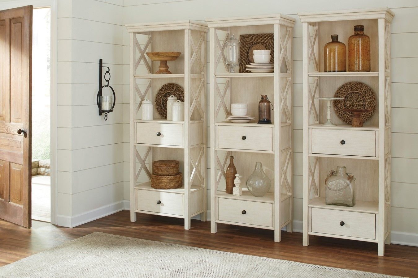 Regał TULUM to doskonałe uzupełnienie kolekcji w stylu farmhouse. Jego sielski charakter podkreślają otwarte półki z dekoracyjnymi bokami w formie krzyżowych wzmocnień, które nadają mu lekkości i rustykalnego uroku. Dzięki połączeniu półek z praktycznymi szufladami regał łączy w sobie …