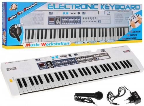 KEYBOARD PIANINO ORGANY DLA DZIECI DO NAUKI ZABAWY MIKROFON NAGRYWANIE USB Cechy główne 61 klawiszy (36 białych + 25 czarnych) – szeroki zakres dźwięków 16 tonów i 10 rytmów – m.in. piano, gitara jazzowa, trąbka, walc, tango, disco 5 rodzajów bębnów – realistyczne podkłady perkusyjne Funkcja …